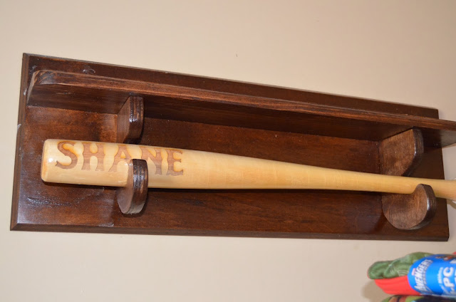 Shelves for all the boys to hold the personalized wooden bats I got for them.